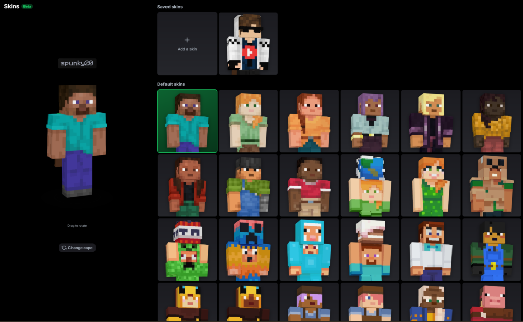 On the left side, you get a large preview of your currently selected skin, which you can rotate by dragging to see it from all angles. Below it, there’s also an option to change your cape if you have one. The right side shows your saved skins at the top and a wide grid of default Minecraft skins below, making it super convenient to browse and pick a new look without leaving the app. Since this feature is still in beta, it may receive more improvements in future updates (such as better organization, skin editing tools, or direct uploading), but it already works smoothly and saves players from having to go into the official launcher or external websites just to change their appearance. It’s a small but welcome quality-of-life addition that makes the Modrinth App feel even more complete.