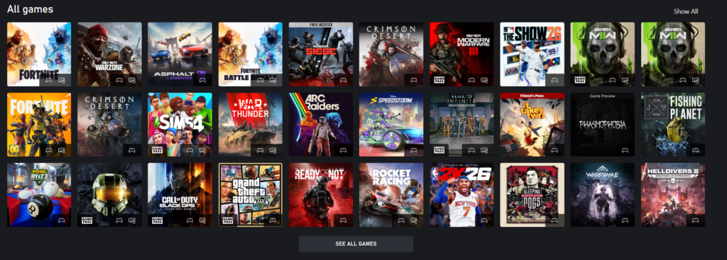 - New 2026 Web Experience — Refreshed browser interface with better navigation and a dedicated Library tab to separate owned games from Game Pass titles.